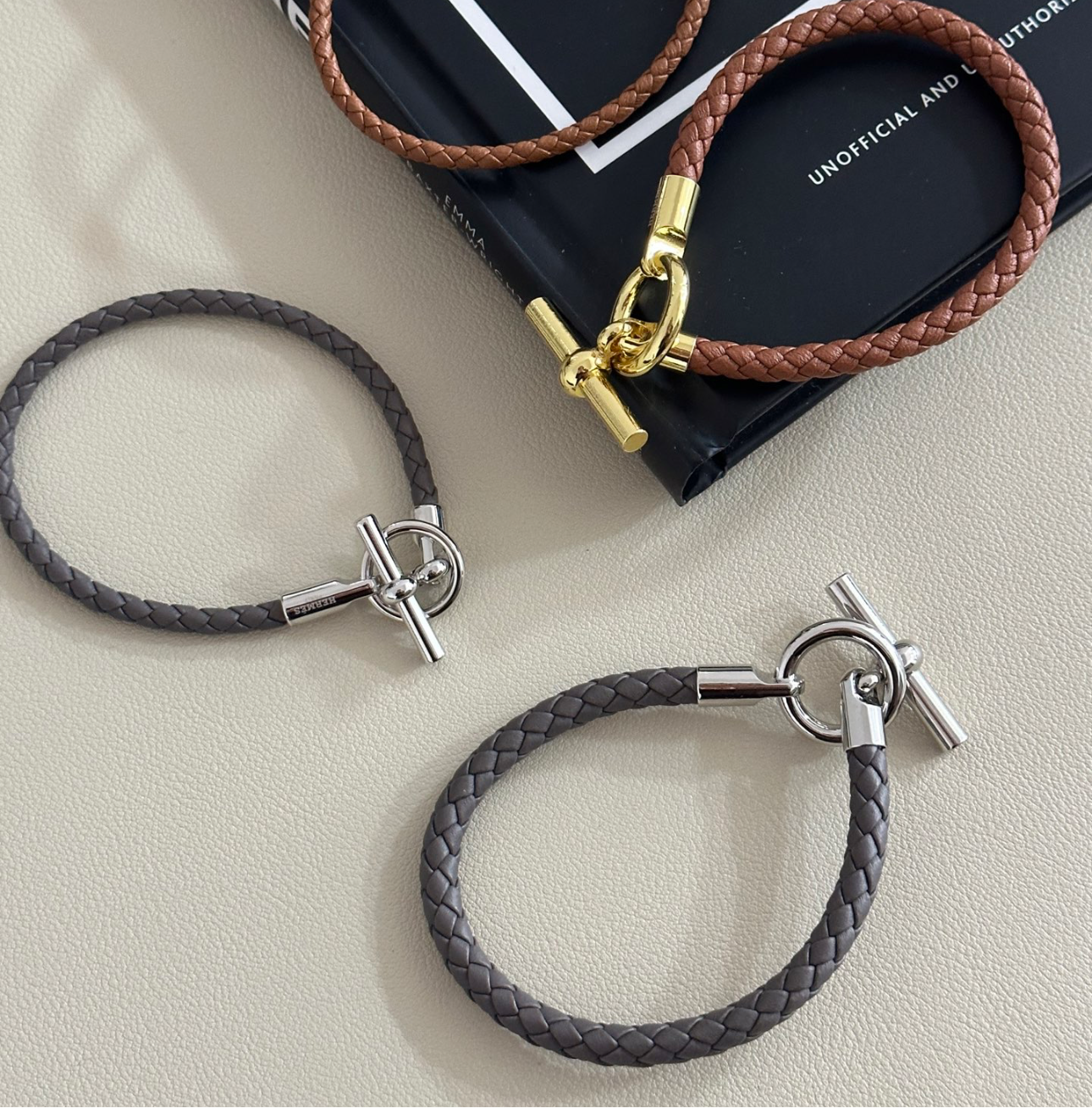 leather cable bracelet available in brown gold or silver grey Matching earrings are also listed under Earrings